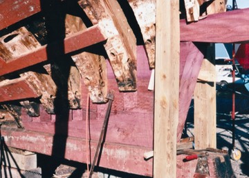 Winter 2004-2005: Replace inner and outer sternposts, stern knee, deadwood, planking, strut pads, all gun ports, etc. (see pictures below) Crew: Sam Jones, Fred Asplen, Alex Hadden