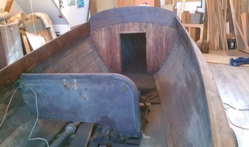 I got a call from Bud Brackett (Me. Classics Inc.) who had been a big help to me a couple of years ago with his marine hardware and engine abilities. He wanted to know if we would consider replacing some frames on a turn-of-the-century “kit” speedboat for his friend John Perkins. I of course said sure, and Faultless arrived on a trailer. Bud and John were doing the mechanicals, while John Thompson and I could do the frames:
